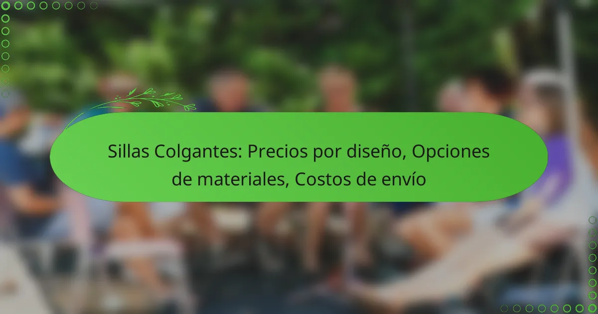 Las sillas colgantes son una opción versátil y estilizada para cualquier espacio, con precios que varían entre 50 y 500 euros según el diseño y los materiales utilizados. Los materiales más comunes, como mimbre, metal y madera, ofrecen diferentes niveles de estética y durabilidad. Además, los costos de envío pueden oscilar entre 10 y 50 euros, dependiendo del proveedor y la ubicación de entrega.